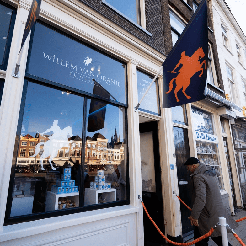 Onze shop ligt op een historische locatie aan de Markt, tegenover de Nieuwe Kerk, Willem van Oranje's laatste rustplaats en een op steenworp afstand van het Prinsenhof, waar hij werd vermoord. Hier koop je niet alleen kaartjes, maar ook bijzondere streekproducten, waaronder het exclusieve Willem van Oranje Bier van de Delftse Brouwers. Daarnaast is er van alles te ontdekken over het leven van Willem van Oranje.